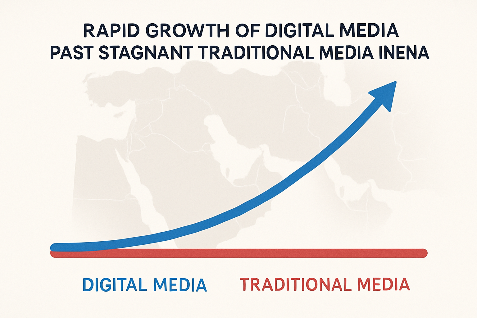 النمو المتسارع للإعلام الرقمي مقارنة بركود الإعلام التقليدي في منطقة الشرق الأوسط وشمال أفريقيا.[/caption]